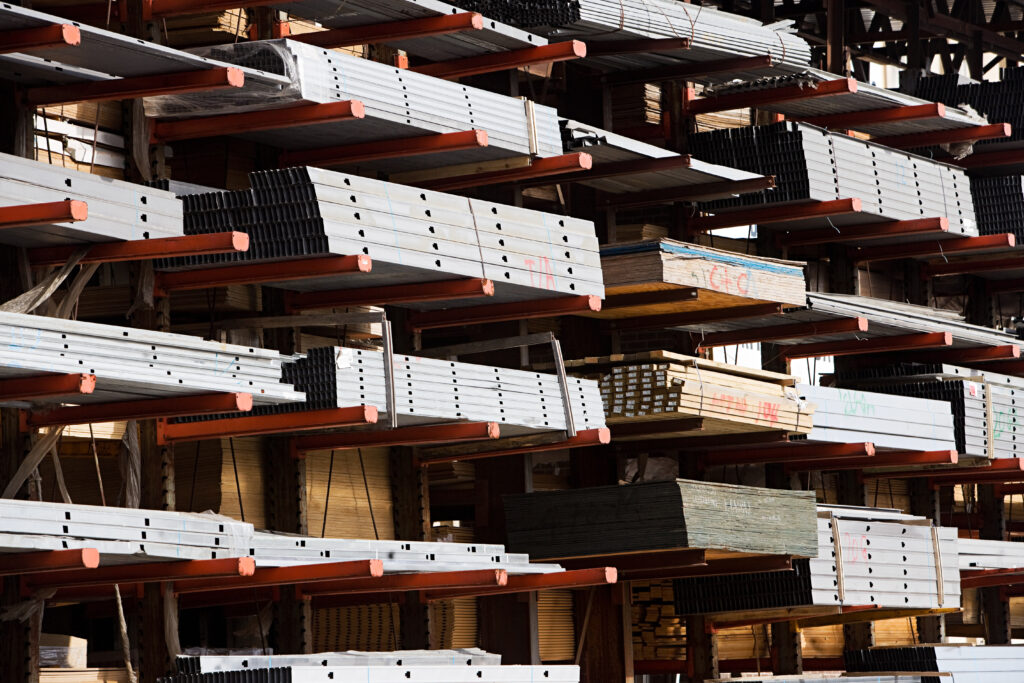 現場から受注を受けた資材を分けて、各トラックに積み込むお仕事。